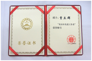 12、2010.04被北京市人民政府评为“北京市先进工作者”。