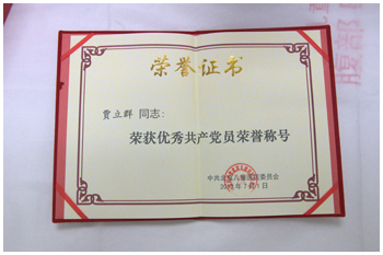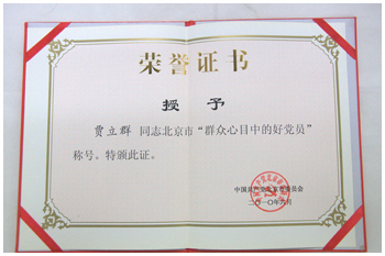 13、2010.06被北京市委评为“北京市群众心目中的好党员”。