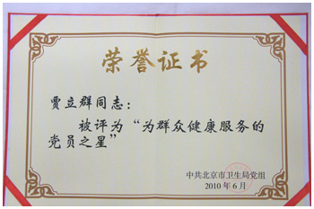 14、2010.06被北京市卫生局评为“群众健康服务的党员之星”。