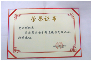 25、2013.06 被首都文明办授“第四届首都道德模范”。