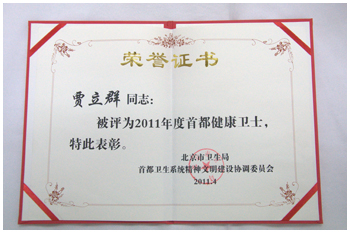 16、2011.04 被北京市卫生局、首都文明办评为“2011年度首都健康卫士”。