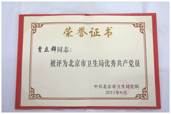 18、2011.06被北京市卫生局评为“局优秀共产党员”。