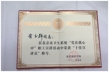 19、2012.05被北京市卫生局评为“十佳宣讲员”。