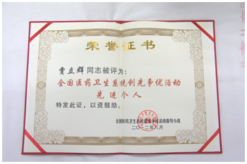 11、2010.01被卫生部、国家药监局、国家中医药管理局评为“全国医药卫生系统先进个人”号称。