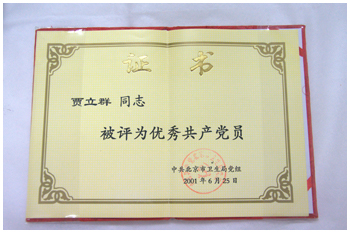8、2001.06 被北京市卫生局评为“局级优秀产党员”。
