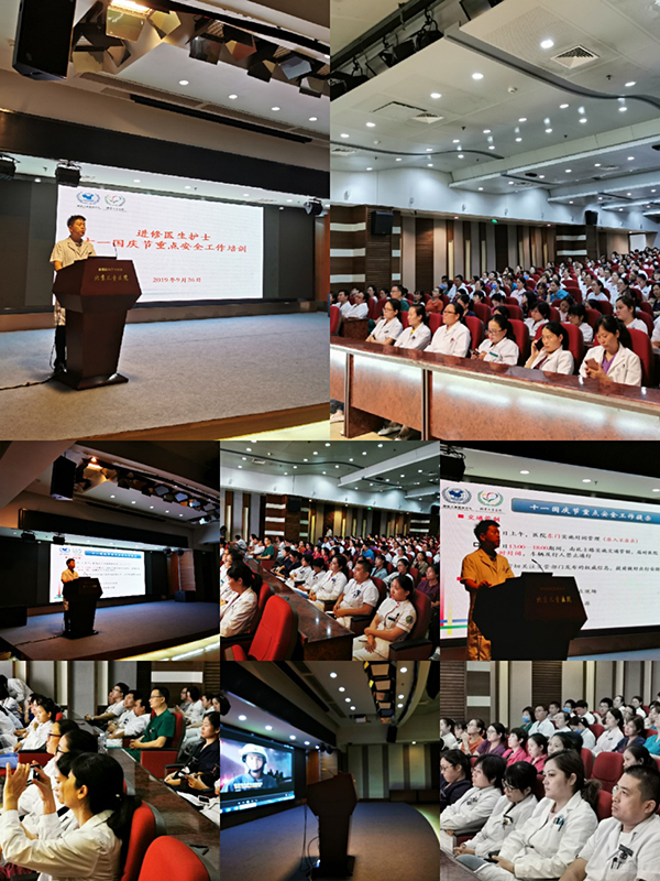 翟敬刚处长主要从交通安全及消防安全、危化品安全、维稳安全等方面展开专项安全培训,要求每人熟知,确保安全。医务处陈晖处长要求所有医护人员在节日期间确保医疗安全,按常规诊治,注意加强沟通,做好交接班等,确保医疗质量,并提醒关于消防安全、外出交通安全等注意事项。保持“万无一失、一失万无”的安全责任意识和使命感,落实安全工作要求,保障节日平安。