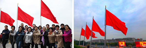 离开了城楼,大家走进天安门广场,在支部书记黑明燕同志的带领下,重温入党誓词,并深情合唱了歌曲《我和我的祖国》。誓言铿锵,歌声嘹亮,党员同志们怀着激动的心情,再一次坚定了自己的理想信念,不忘初心,坚守使命,决心以实际行动兑现对党的庄严承诺。