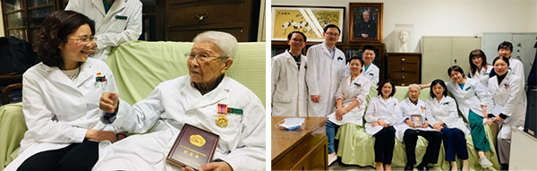 总会计师邓亚芳现场为张院士佩戴了“中国人民志愿军抗美援朝出国作战70周年”纪念章。她说:“这是您荣誉的象征!感谢您为国家做出的巨大贡献!”70载岁月洗礼,历史的记忆从未褪色。张院士讲述了当年抗美援朝出国作战期间,志愿军缴获美军大量战利品的情况,其中就包括呼吸机、麻醉机等。他说:“当时大家高兴极了!但都看不懂英文说明书,我就把它们翻译成中文,并将战地手术队的医生、麻醉师集中到一起,开办了第一届手术麻醉培训班。”张院士的讲述为在场的医务人员上了一堂生动的历史课,大家纷纷称赞张院士的勇敢和博学,并暗下决心要学习张院士这种伟大的革命精神。