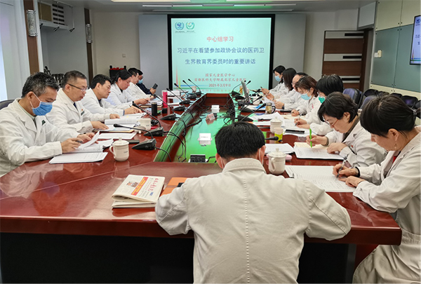 3月9日,院党委开展理论中心组学习(扩大)会。党委书记张国君同志带领班子成员、院长助理和托管医院执行院长,认真学习了习近平总书记3月6日看望参加政协会议的医药卫生界教育界委员时的重要讲话。