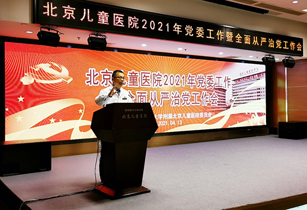高质量党建推动医院高质量发展,4月13日上午,北京儿童医院党委在门诊楼12层报告厅召开2021年度党委工作暨全面从严治党工作会,部署医院的全面从严治党工作。全体院领导、中层干部、各党支部书记等200余人参加了会议。