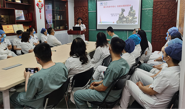 随后,中医科主任胡艳介绍了中医科在“学党史、学院史、学科史”工作中对中医科科室文化传承的梳理工作,同大家一起回顾了中医科的发展历程与成绩,并和大家一起对中医科的未来进行了展望。
