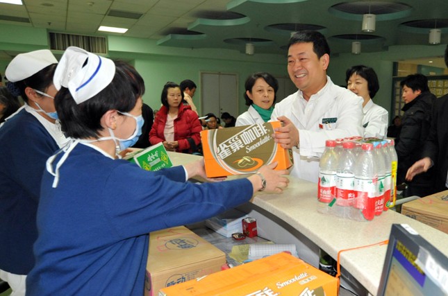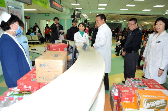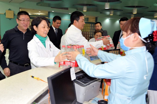 院领导心系一线职工,1月23日上午,我院倪鑫院长、沈颖书记亲自来到门诊为职工送去了饮料、八宝粥等食品,并叮嘱大家在紧张工作的同时一定要保重好身体。职工们感谢院领导的理解与关怀,表示将更加努力的工作,为医院做出贡献。