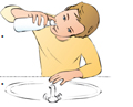 6、如果小朋友感觉有水留在鼻子里边出不来,可能是由于盐水留在鼻窦里面,可以让孩子弯腰、侧脸,保持有水的鼻孔在上,然后站直,如果另一侧鼻孔也有同样的感觉,可重复上述动作。
