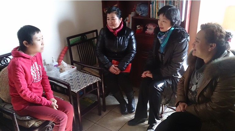 1月22日下午,北京市卫生局工会主席姜丽在我院工会副主席聂小莺及工会干事的陪同下,来到了身患白血病的赵雪丽家中。