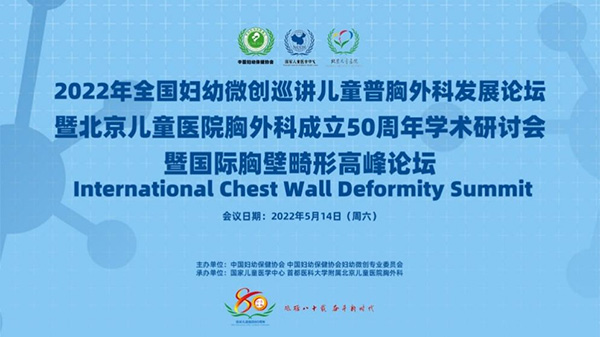 5月14日,由中国妇幼保健协会主办,首都医科大学附属北京儿童医院胸外科承办的2022年全国妇幼微创巡讲儿童普胸外科发展论坛暨北京儿童医院胸外科成立50周年学术研讨会暨国际胸壁畸形高峰论坛,在线上圆满召开,大会由北京儿童医院胸外科主任陈诚豪主持。本次大会邀请了全国从事儿童普胸外科的知名专家和美国Children’s Hospital of The King’s Daughters(CHKD)医院的两位教授进行讲座,全国从事儿童普胸外科的同道约750人积极参会讨论。