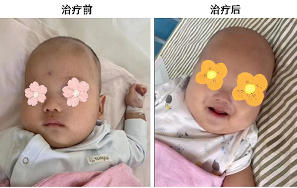 谁会想到小臻臻初来就诊时却是另外一番场景。当时,已经被确诊患有婴儿急性淋巴细胞白血病的小臻臻只有3个月。小臻臻的父母辗转多地求医,被告知救治希望渺茫。无奈之下,他们抱着一线希望来到北京儿童医院保定医院。来就诊时,小臻臻颜面和下肢布满出血点及瘀点,肝脾异常肿大,白细胞高于正常28倍,如此大的肿瘤负荷对脏器功能尚未发育完善的小婴儿来说,在接受化疗后随时可急剧出现肿瘤溶解综合征及弥散性血管内凝血而危急生命。治疗已经刻不容缓!