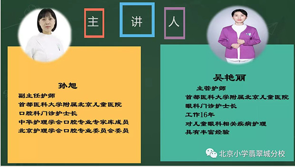在六一儿童节和北京儿童医院建院80周年之际,近日,北京儿童医院护理部以“科普促健康,携手向未来”为系列活动的主题,举办了“隔空递爱、护佑成长”科普知识进校园线上活动。本次主讲的内容为“爱护眼睛、呵护牙齿”,帮助在疫情防控形势下居家学习的学生掌握了预防近视和龋齿的方法,助力孩子们拥有更加健康快乐的生活。北京小学翡翠城分校的200余名学生及家长参加了此次活动。